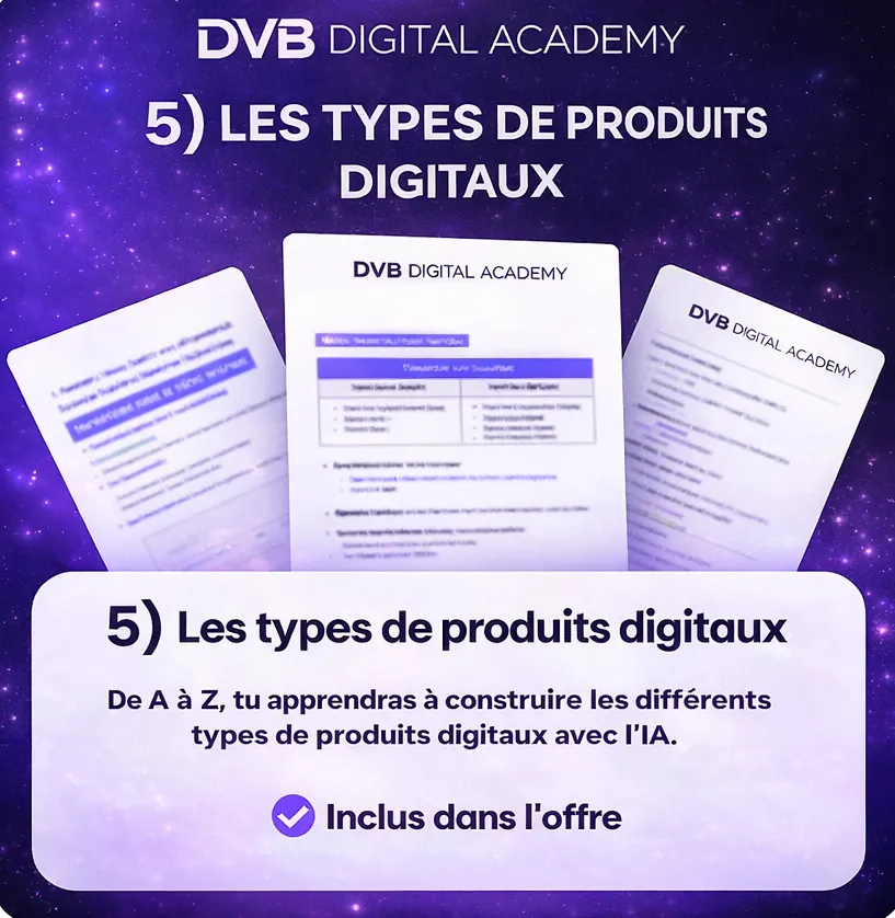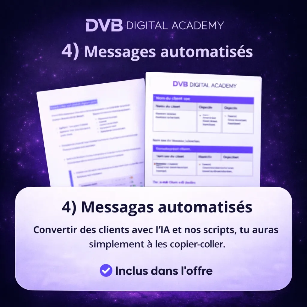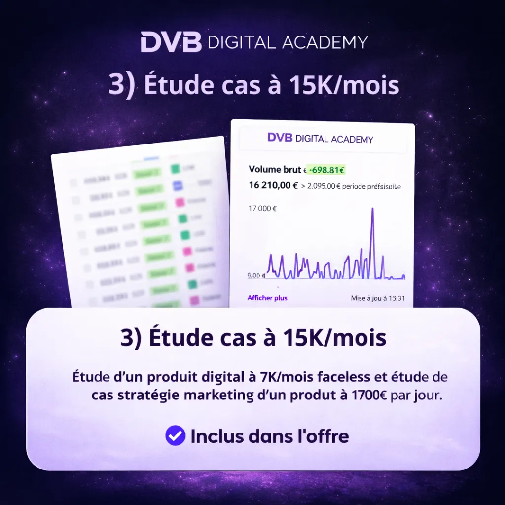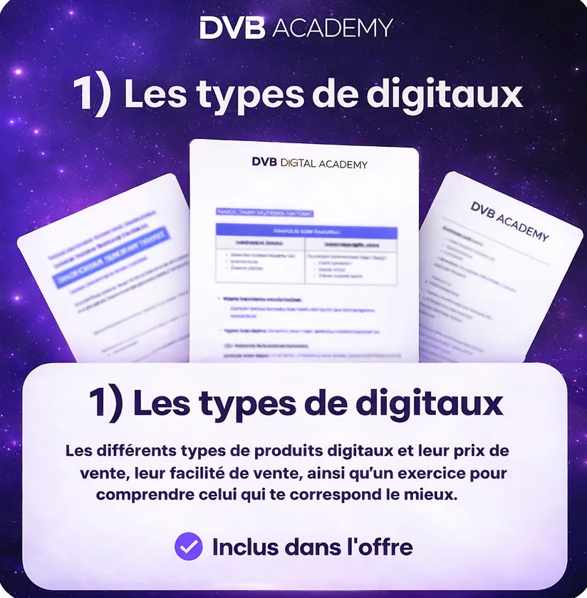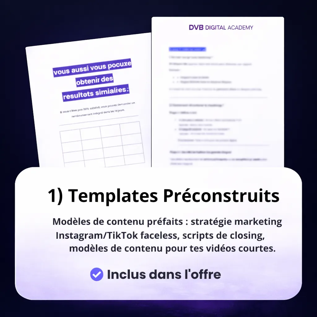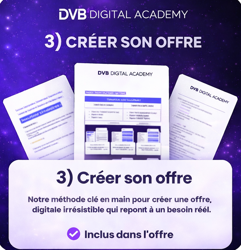 La DVB Digital Academy te donne ce système complet, dans l’ordre, avec des templates à appliquer.