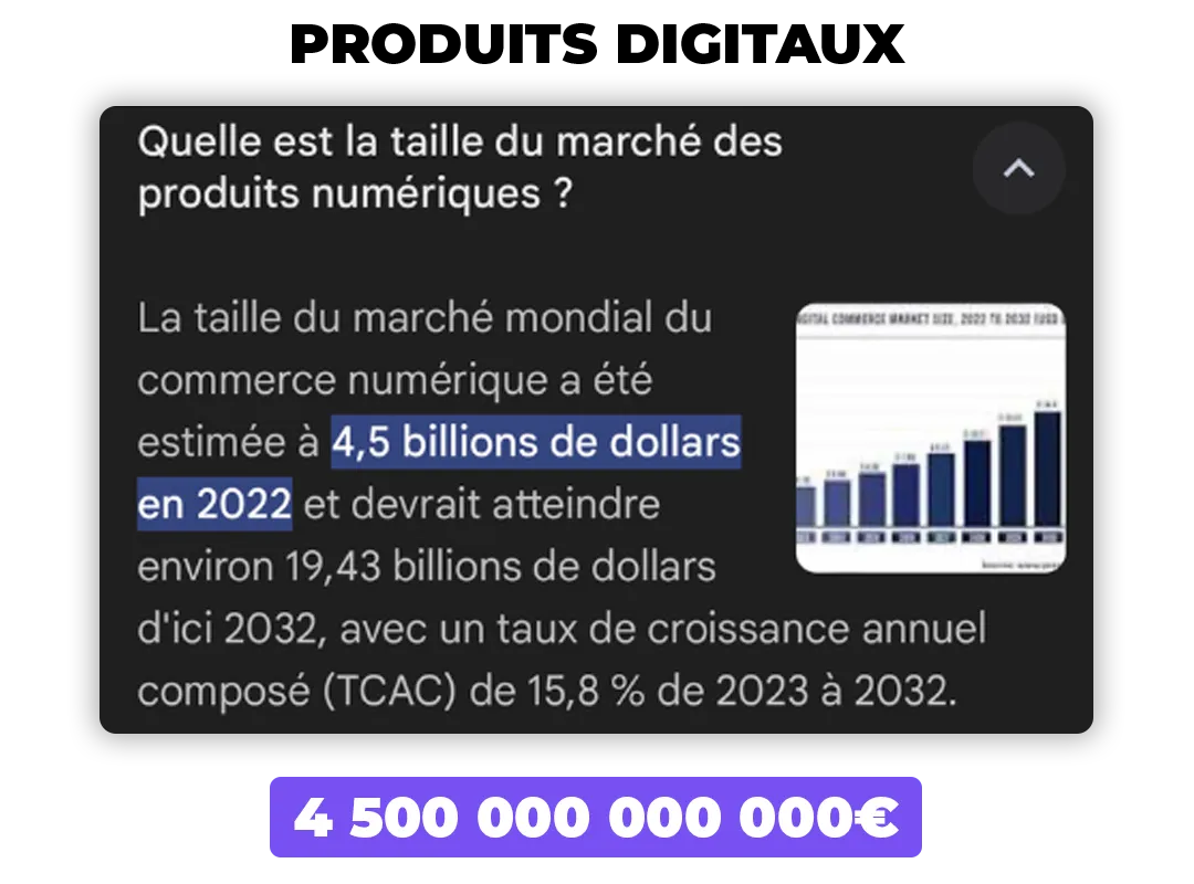 4) Un marché encore sous-exploité. Beaucoup se battent sur des modèles saturés, alors que peu de personnes vendent réellement des produits digitaux. Vous êtes donc face à un océan bleu.